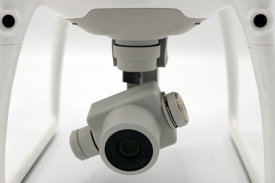 The DJI Phantom 3 Standard boasts a 2.7K HD camera, capturing stunning aerial footage as detailed in the manual. Its 3-axis gimbal stabilization ensures smooth, cinematic shots, even in windy conditions. Weighing 1216g with the battery, it offers a balance of portability and stability.